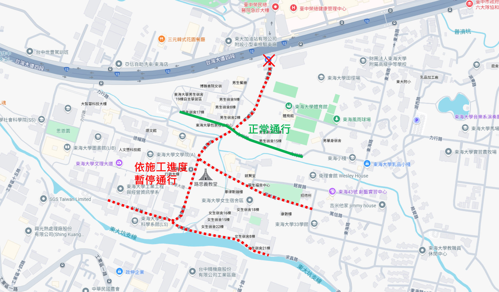 因本校進行 柏油路面刨鋪工程,施工期間將依現場進度隨時實施道路封閉。請各位師生及來訪人員務必配合交通管制與改道路線,造成不便,敬請見諒。