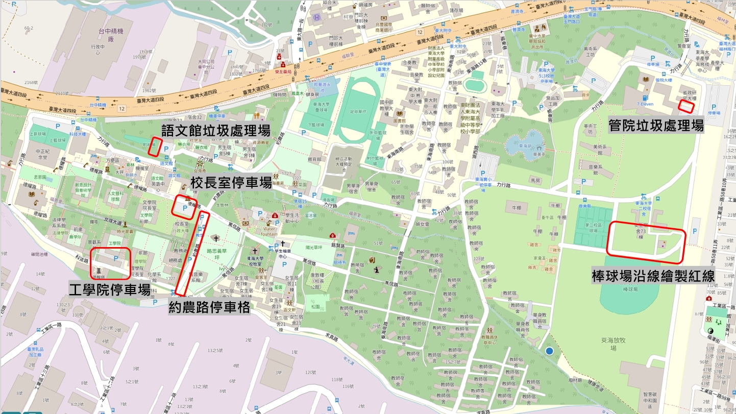 本校將於 114年3月22日(六)至3月23日(日)上午08:00至下午18:00 進行路面標線施作,施工範圍包括: